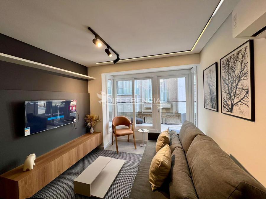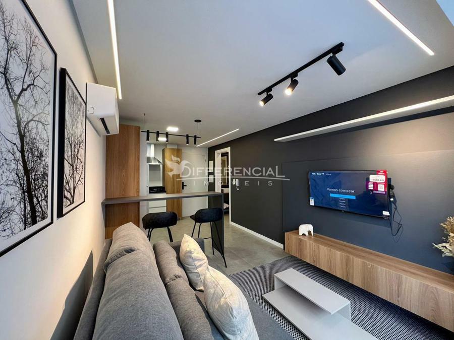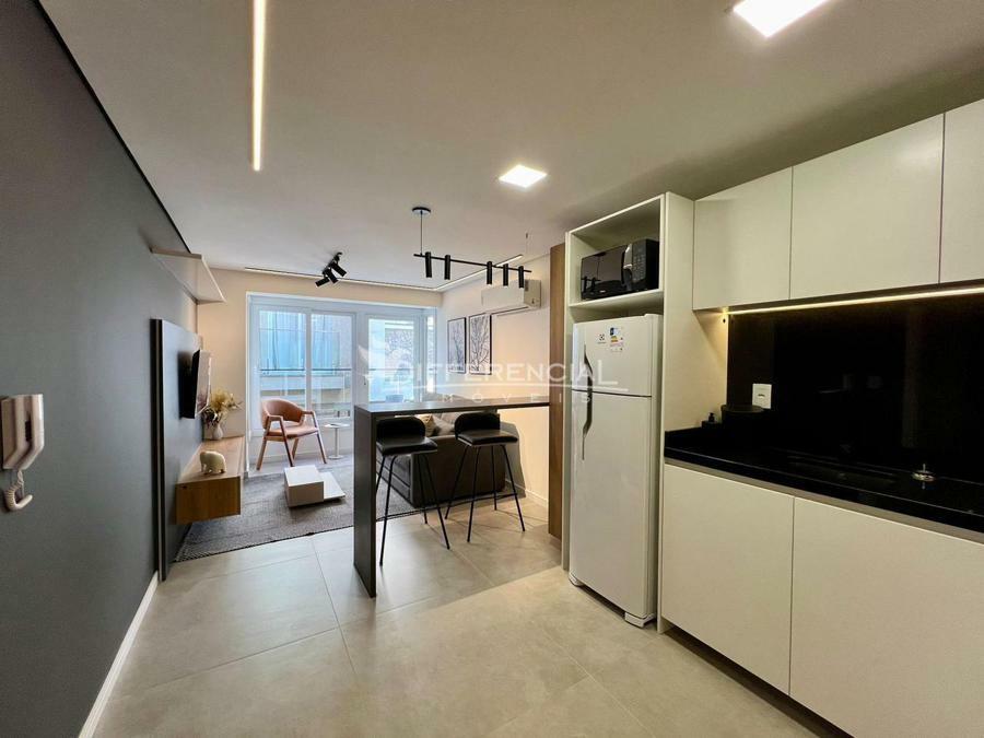 Apartamento com 1 dormitório, 39,00m² de área privativa, sala de estar, jantar, cozinha, churrasqueira, lavanderia, sacada, hall de entrada, 1 vaga de garagem.