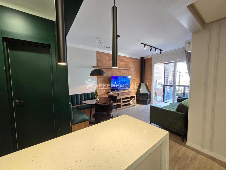 Apartamento com 73,52m² de área privativa, sala de estar com lareira, sacada, sala de jantar, cozinha, lavanderia, hall de entrada, 1 vaga de garagem.
