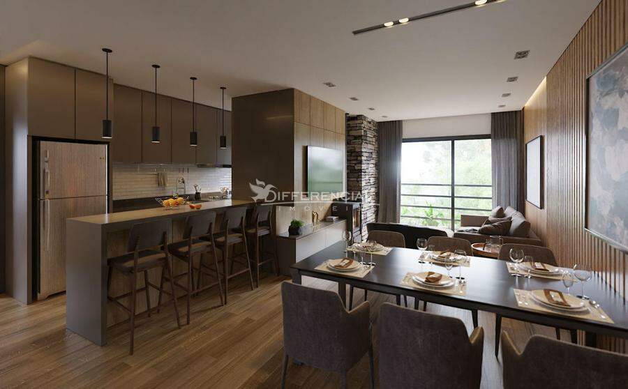 2 suítes, sala de estar e jantar, cozinha, churrasqueira, lavanderia, lavabo, hall de entrada, 1 vaga de garagem.