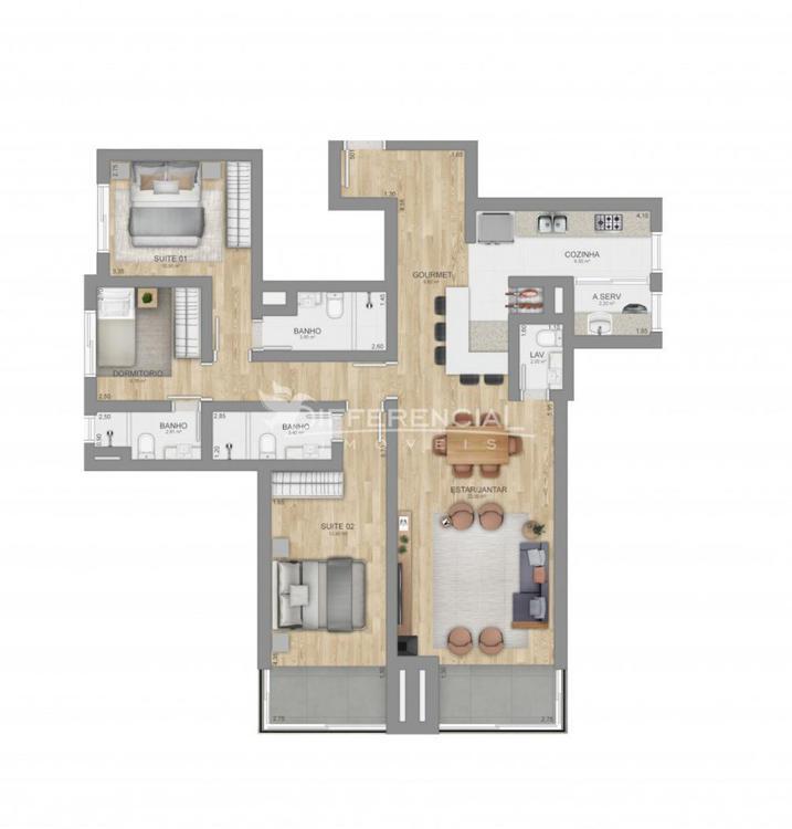 Apartamento localizado no Bairro Centro, em Canela, com 122,92m² de área total, sendo 100,18m² de área privativa.