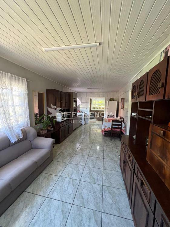3 dormitórios, sala de estar, cozinha, churrasqueira, churrasqueira, depósito, lavanderia, hall de entrada, 1 vaga de garagem, terreno cercado.