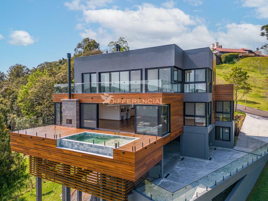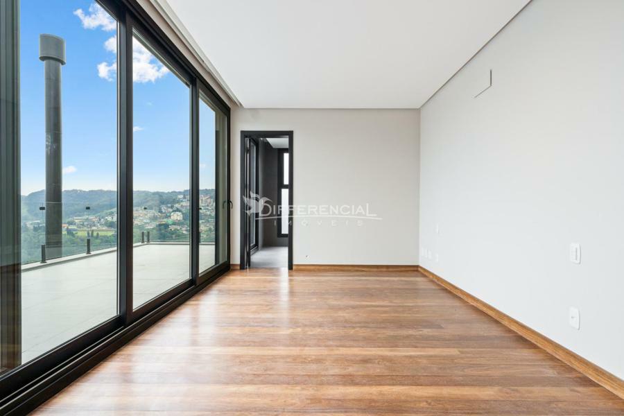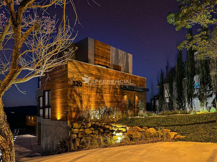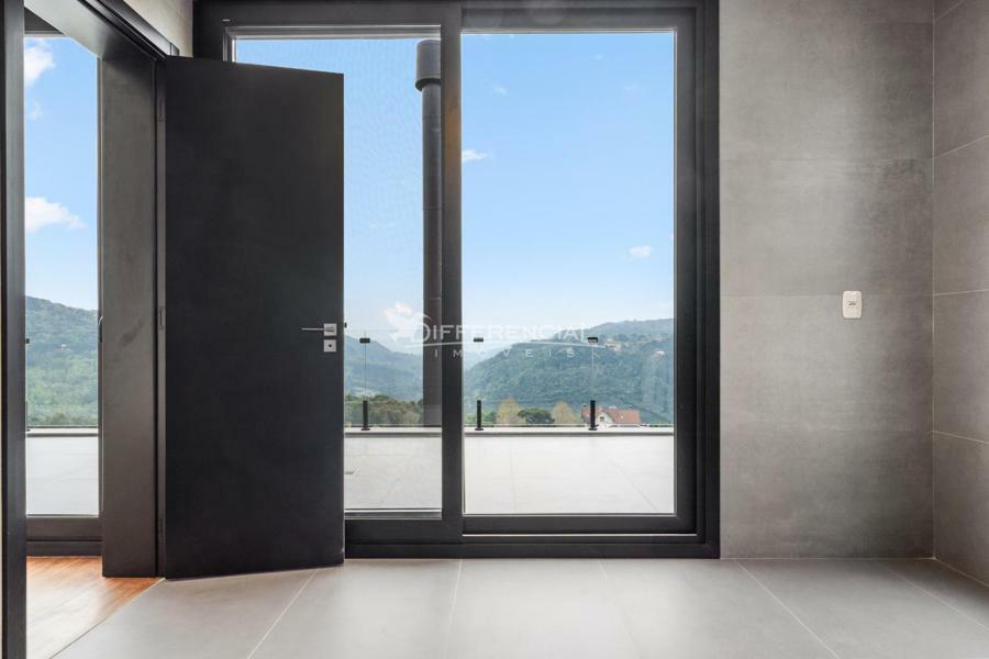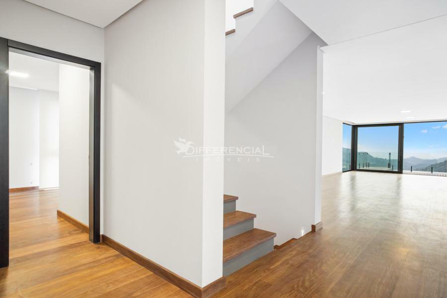 Esquadrias em PVC na cor preta com vidros duplos, residência mista, acabamentos em gesso, piso de assoalho, piso aquecido nos banheiros, telas solares, blackouts motorizados.