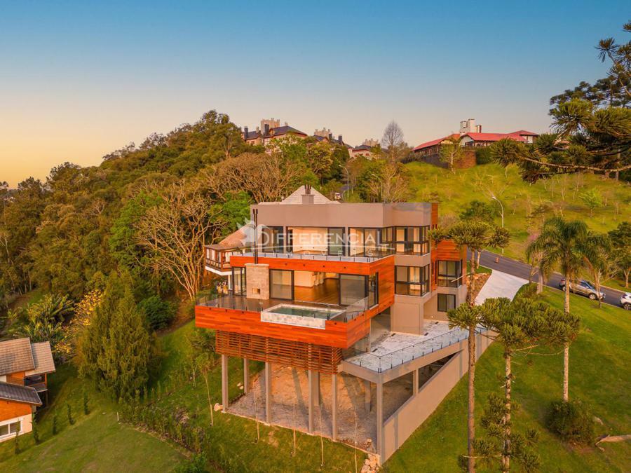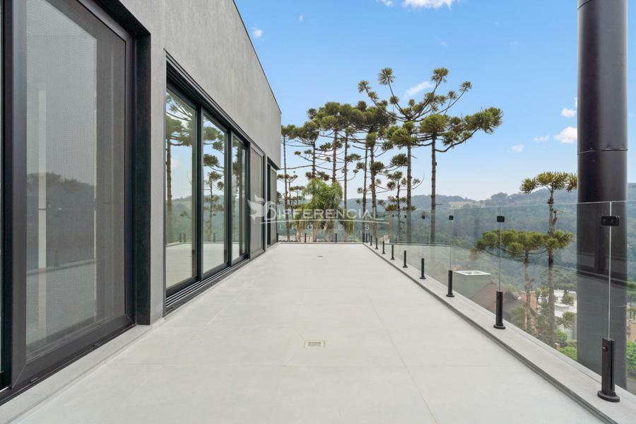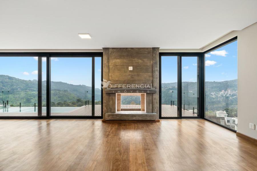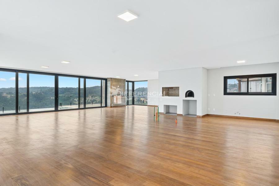 4 suítes (sendo 1 térrea e 2 master), sala de estar com lareira, sala de jantar, cozinha, churrasqueira, sacada, lavanderia, lavabo, dependência para empregada, espera para elevador, espera para split.